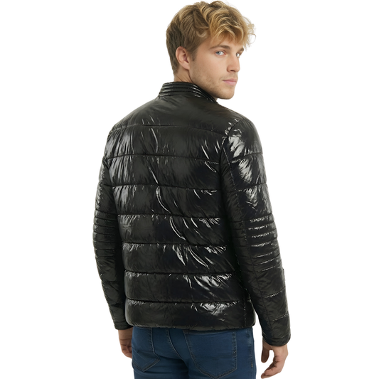 Chamarra Boy London Capitonada Brillante 7 Cierres Negra