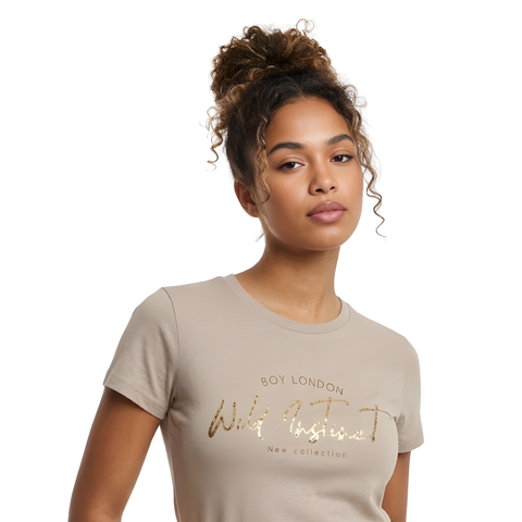 Playera Boy London Mujer Negra Alternative Foil Dorado