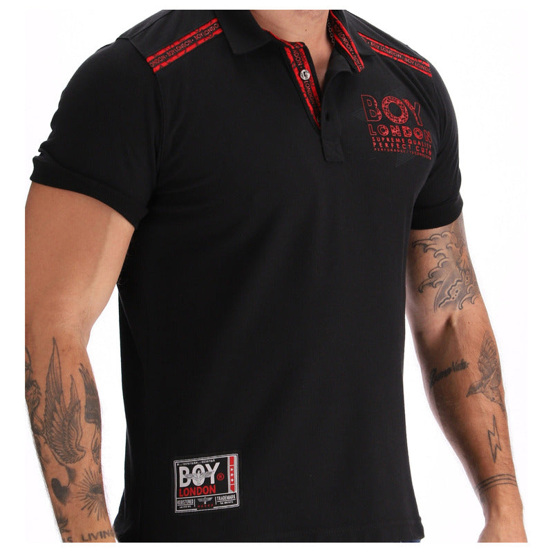 Playera Negra Tipo Polo Para Hombre Letras Rojas Boy London