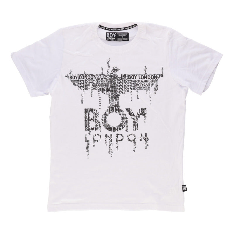 Playera Manga Corta Blanca Texturizada Letras Boy London