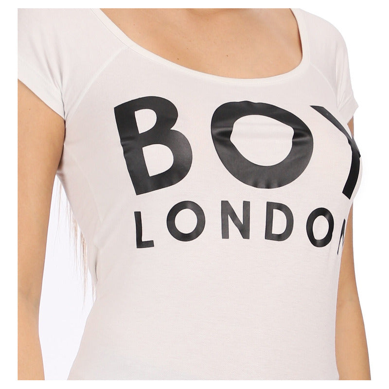 Blusa Blanca Dama Estampado Clásico Letras Negras Boy London