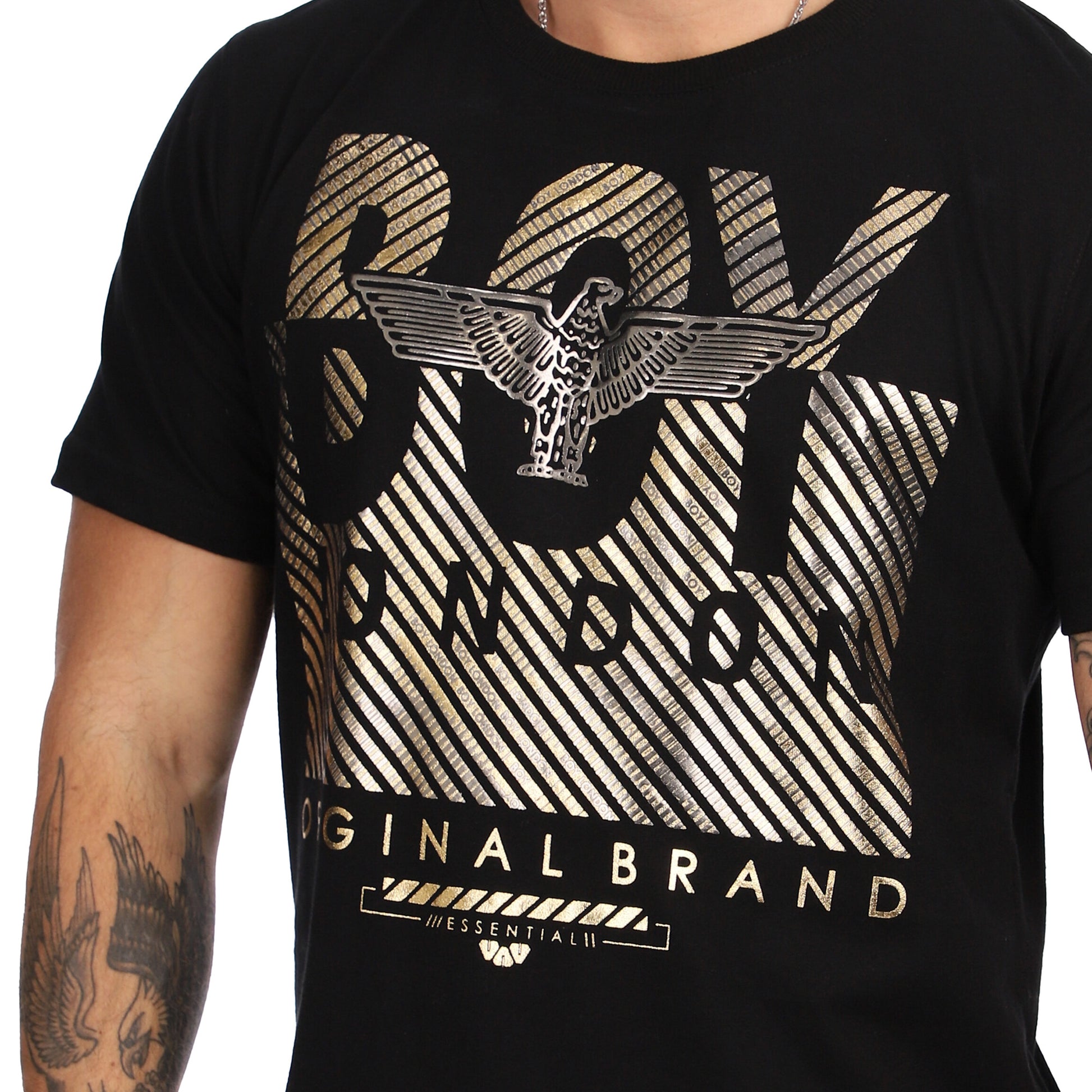 Playera Negra De Manga Corta Hombre Estampado Oro Boy London