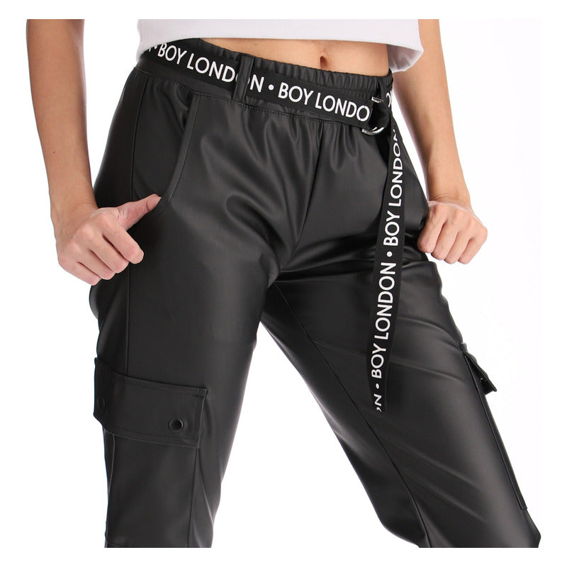 Pantalon Vinipiel Jogger Negro Cinturon Bolsillos Boy London
